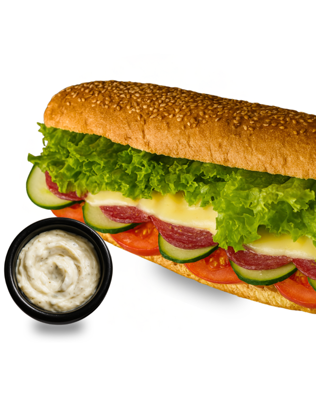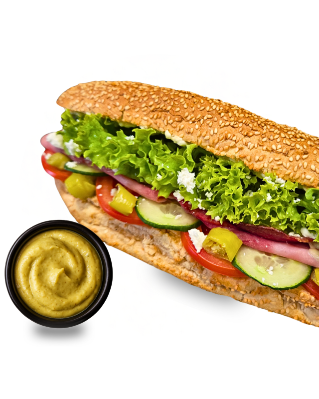 Hinterschinken2,3, Salami2,3, Peperoni mild2,9,L, frische Gurken, Tomaten, HirtenkäseG (Kuhmilch), Gouda-KäseG, Salat