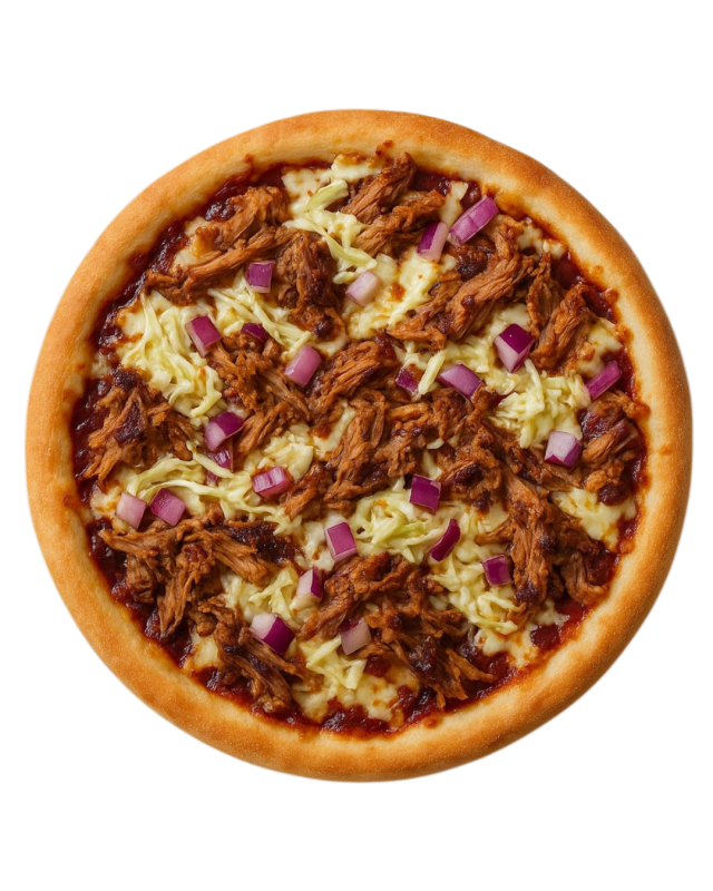 BBQ Sauce, rote Zwiebeln, Pulled Pork (zartes Schweinefleisch) Krautsalat, Gouda