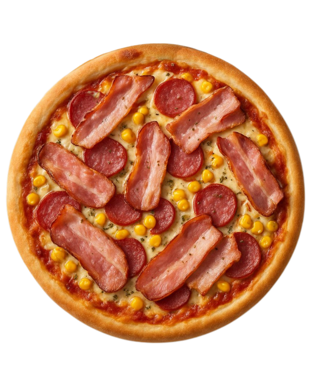 Tomatensauce, Salami23, Bacon23, Mais, Oregano, Gouda